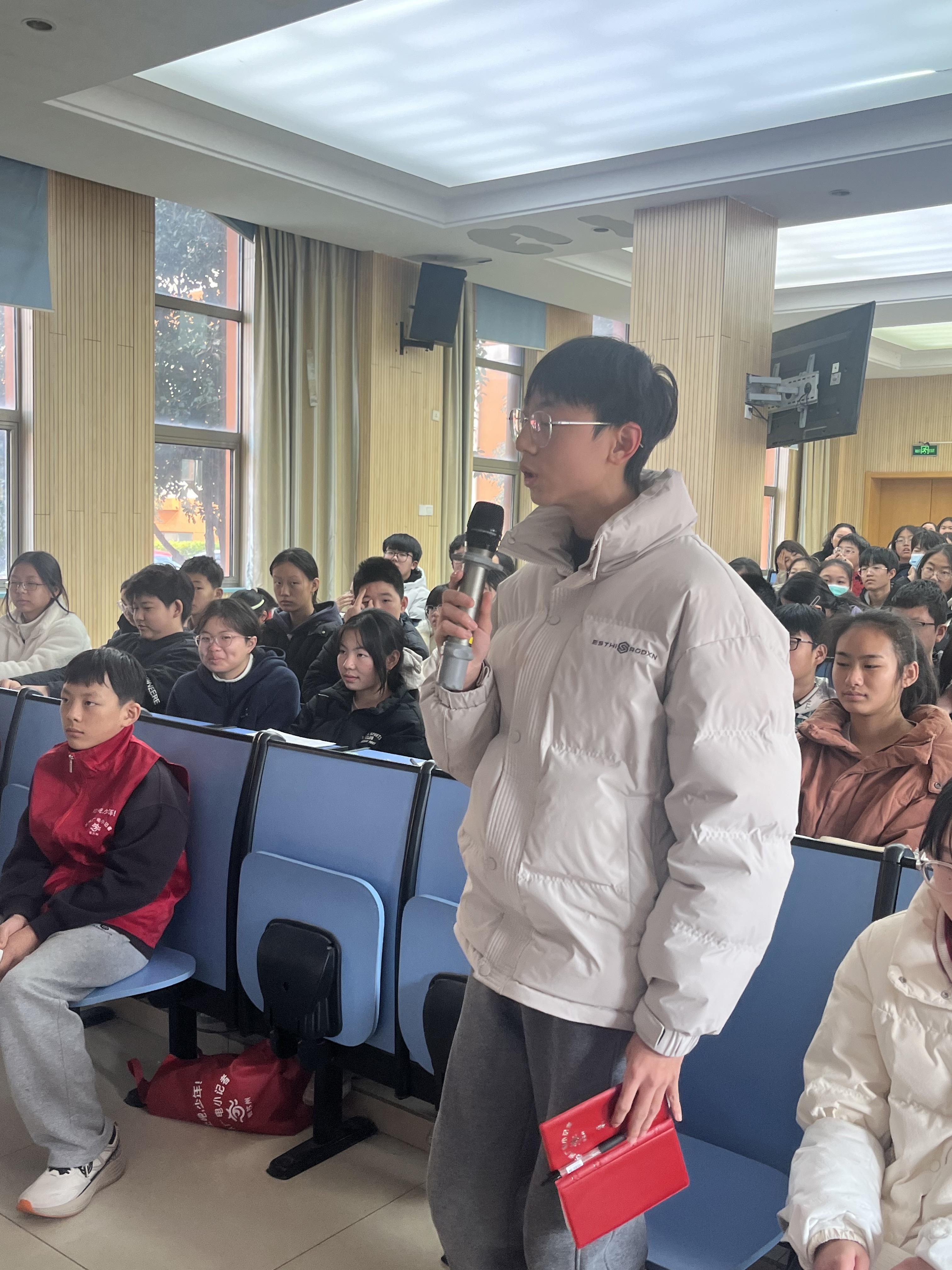 活动落幕,诗意与力量却在校园里久久回荡。同学们纷纷表示,这场演讲让他们深受鼓舞,不仅感受到了文字的魅力,更懂得了成长的意义。有同学在笔记本上写下:“原来平凡的人生也可以闪闪发光,我也要做一个心怀热爱、脚踏实地的追光者。”
