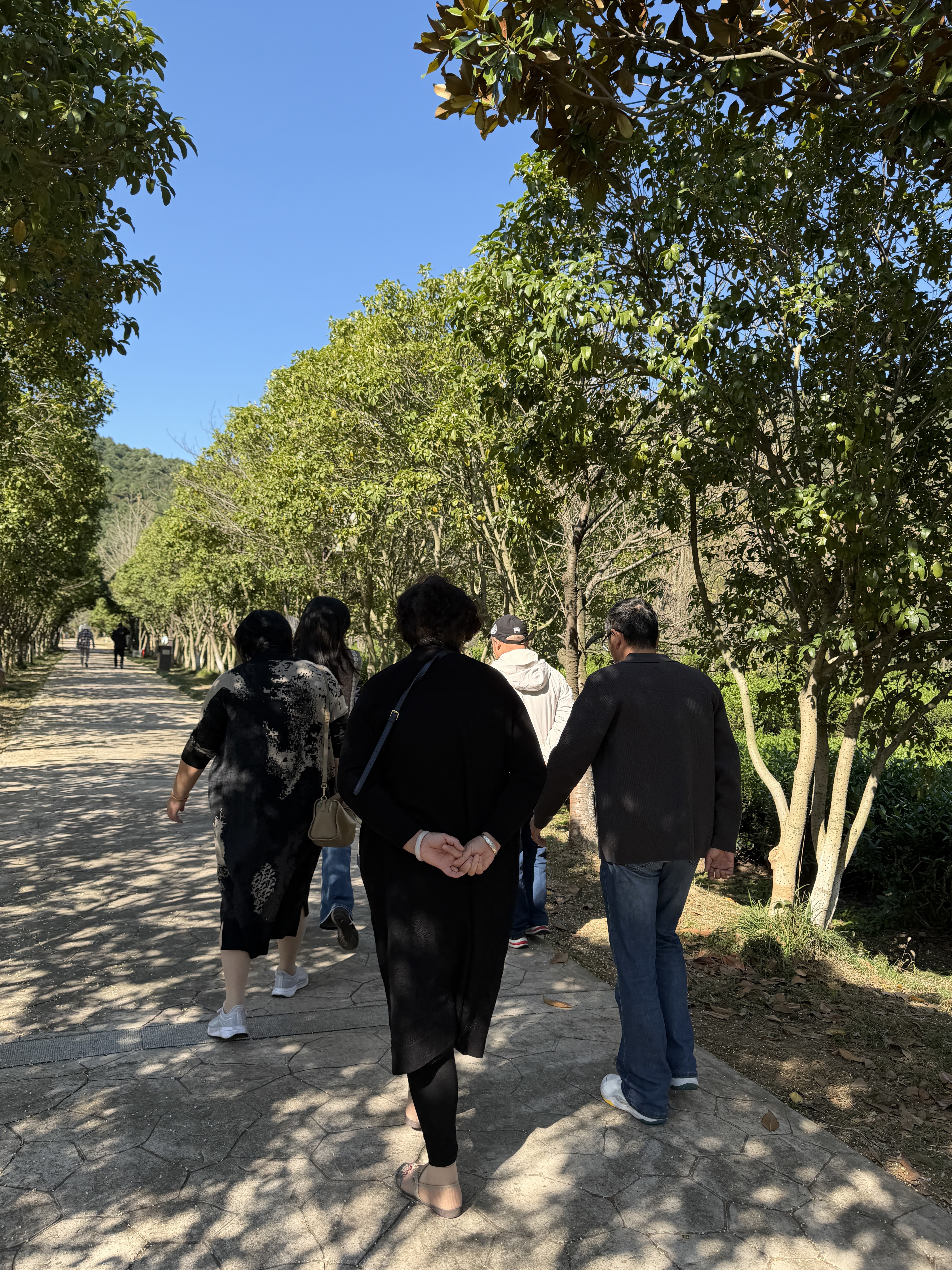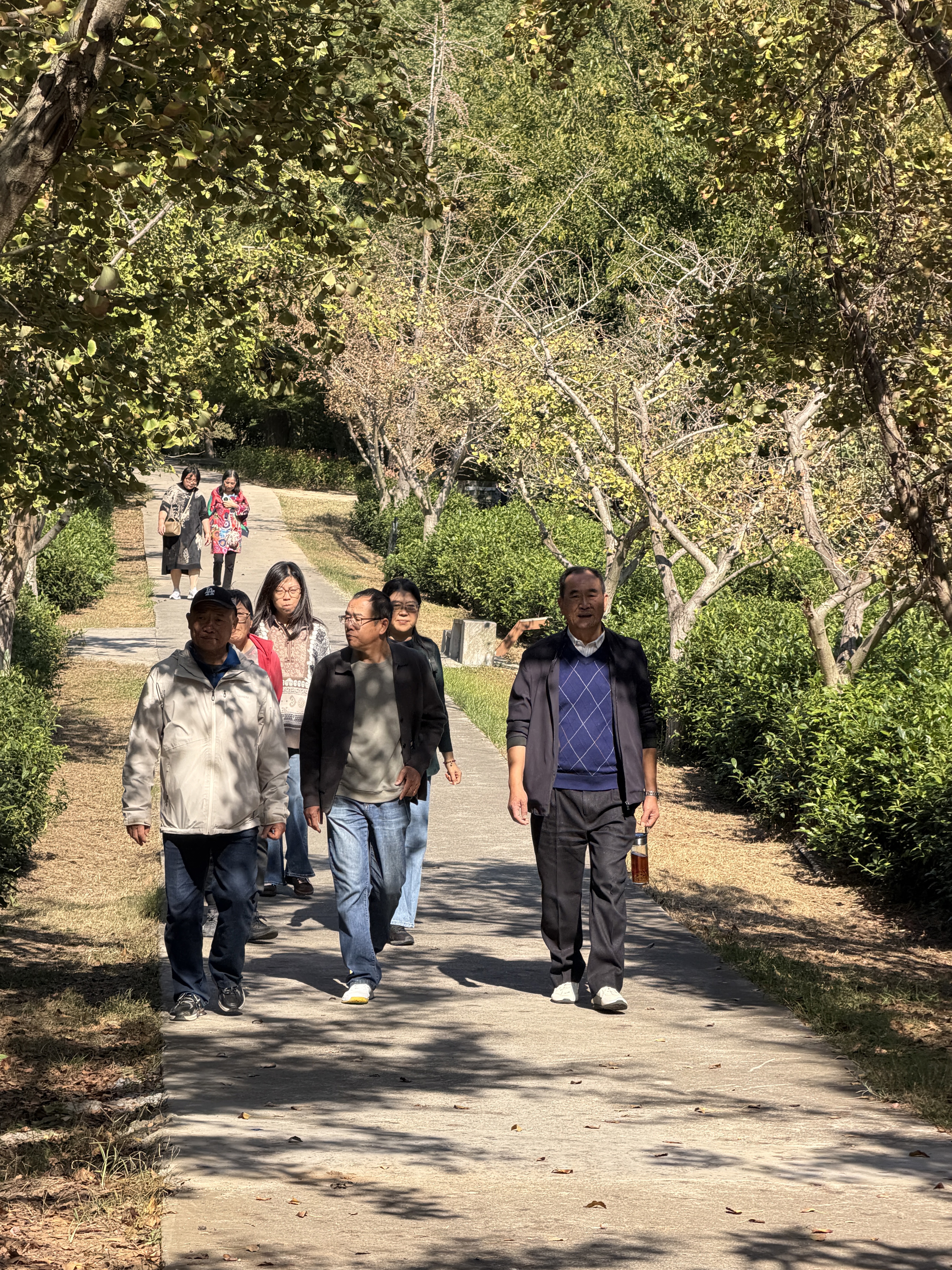 参观完校园后,退休教师们与学校领导、工会委员、在职年轻教师代表一同前往吴中区旺山景区。旺山景色宜人,正值金秋,山间层林尽染,风光无限。退休教师们缓缓登山。大家一路走一路聊,时而驻足欣赏山间美景,时而拍照记录下美好瞬间。登高过程中,既锻炼了身体,又感受到了集体活动的欢乐。