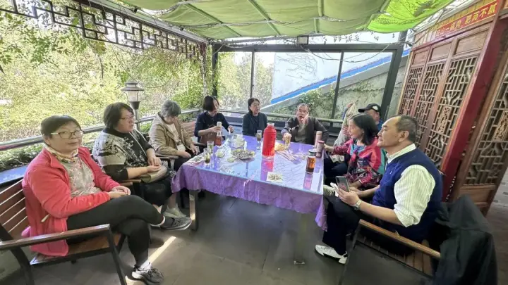 中午,大家返回出发地,举行了简单而温馨的茶话会并享用午餐。茶话会上,学校领导向退休教师们汇报了学校的最新发展和成就,老教师们听后倍感欣慰,纷纷为学校的蓬勃发展点赞。大家围坐在一起,忆往昔、话今朝、展未来,现场气氛温情而热烈,充满了浓浓的归属感与幸福感。