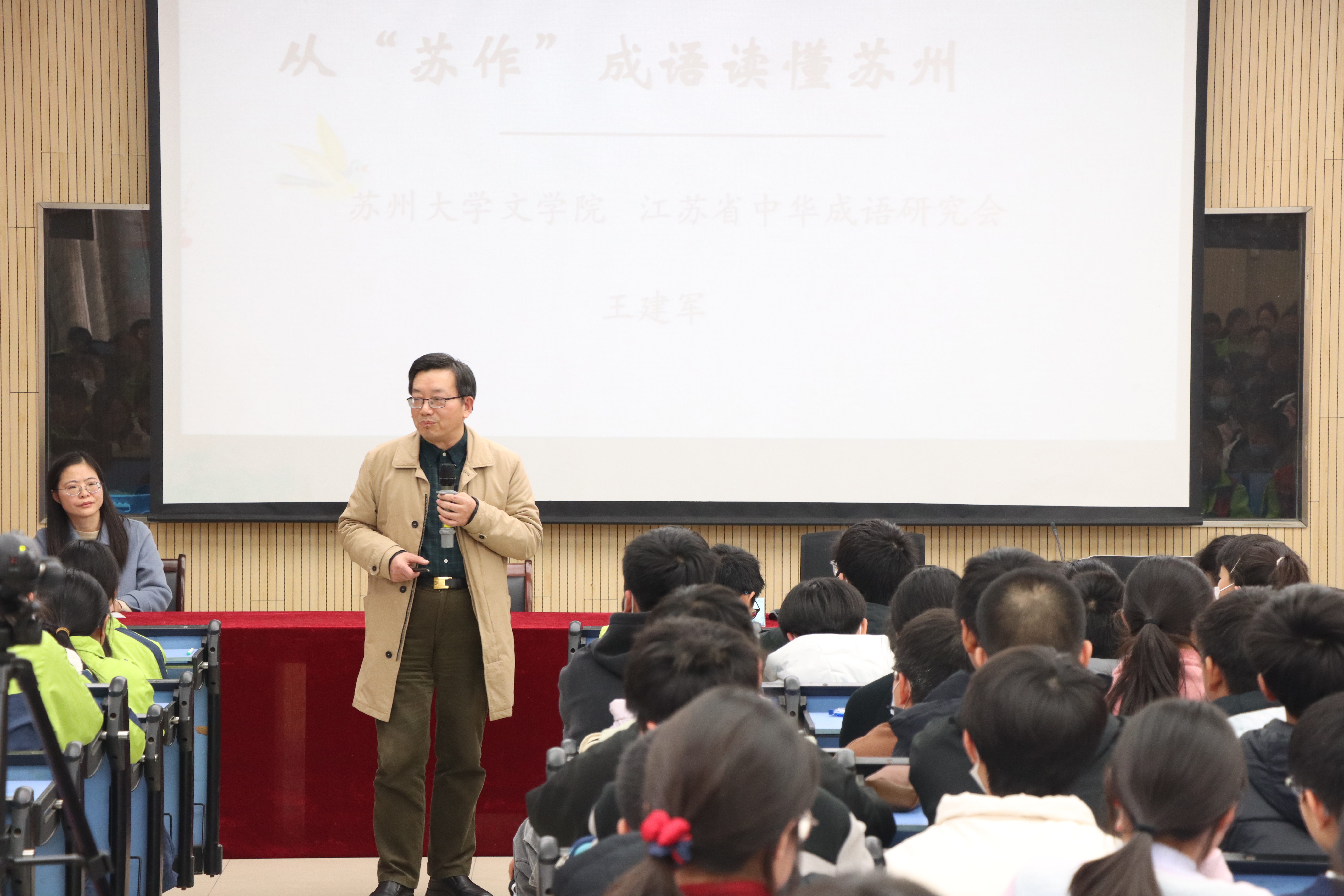 讲座尾声的赠书仪式,为这场文化之旅画上圆满句号。王教授的分享不仅让师生领略了“苏作”成语的独特魅力,更点燃了大家探索本土文化的热情。正如他所说,苏州的文化宝藏还有很多,等待着人们去发现。下次漫步虎丘、寒山寺,或是品尝藏书羊肉时,不妨探寻背后的成语故事——那些流传千年的四字箴言,正藏着苏州最动人的文脉密码,等待着我们一一解锁。
