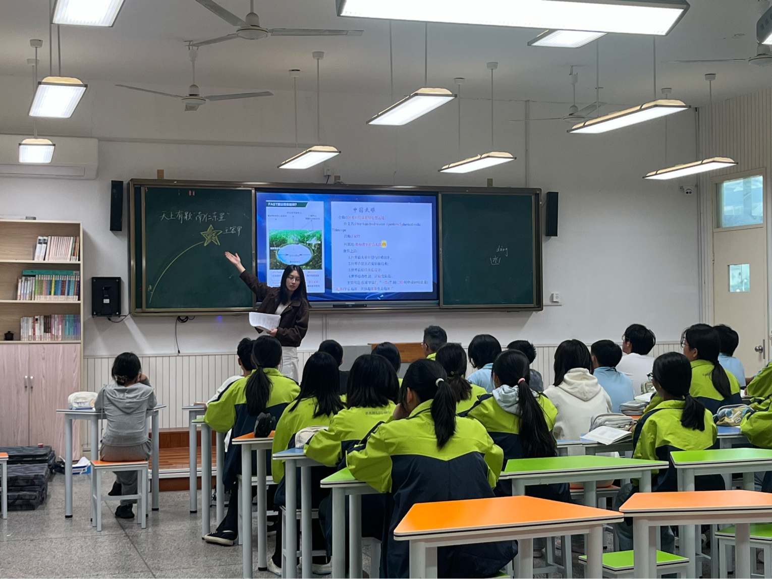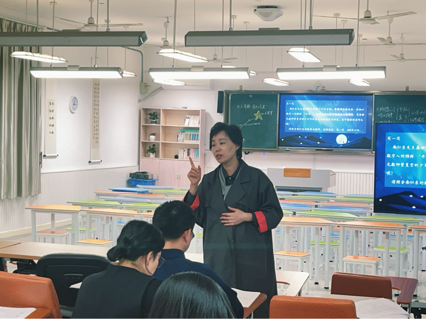 语文组谢可欣、许纳微老师同课异构《天上有颗“南仁东星”》。谢老师以“打造数字人南仁东”为情境,引导学生在任务驱动中建立人物数据库、打造VR场景;许老师则聚焦传记写法,引导学生解析“星星”意象,探讨真实与虚构的平衡。