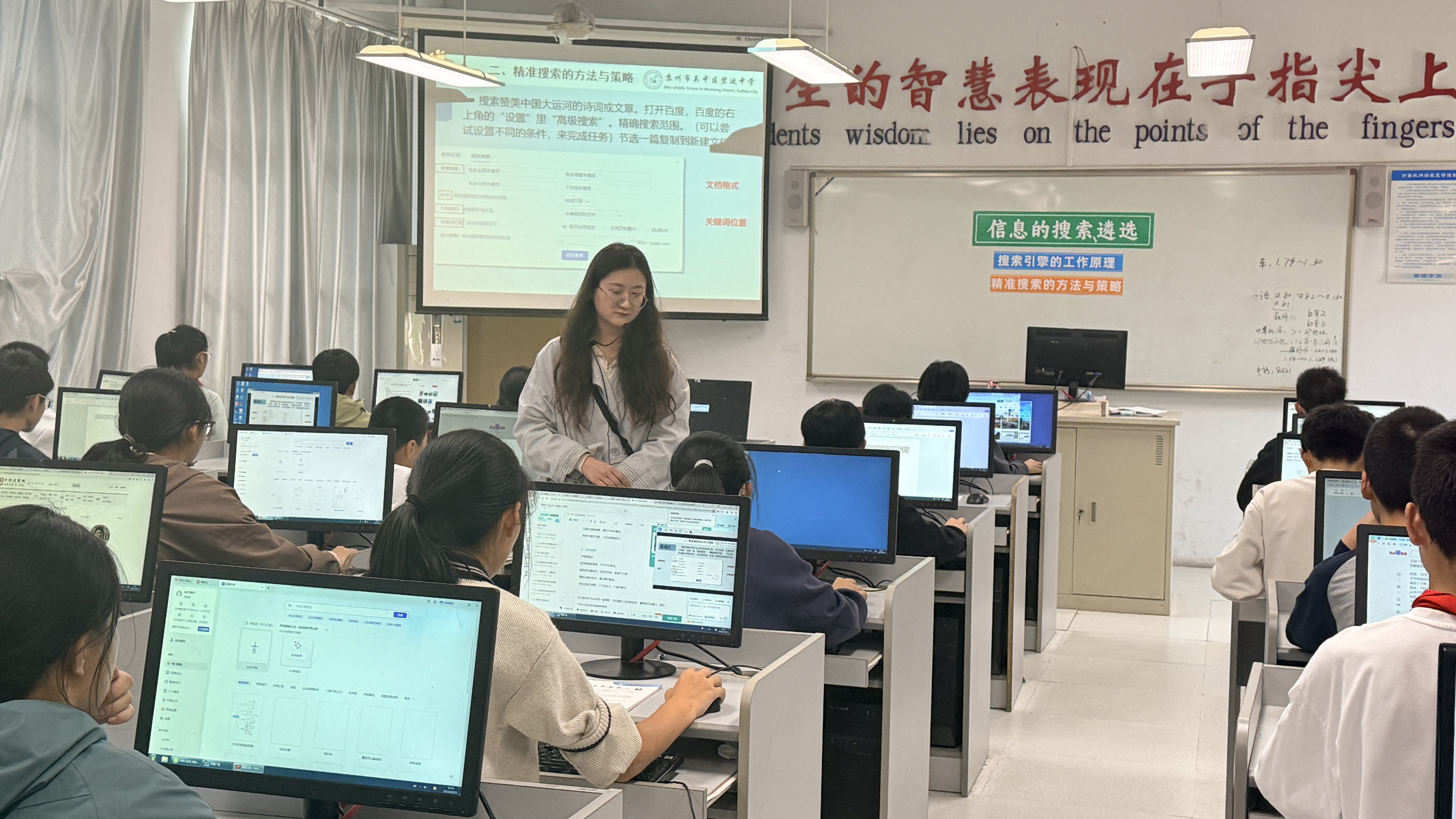 信息组殷雨洁老师执教《信息的搜索与遴选》,以"大运河文化"为情境,引导学生掌握搜索策略,理解技术原理与社会责任。