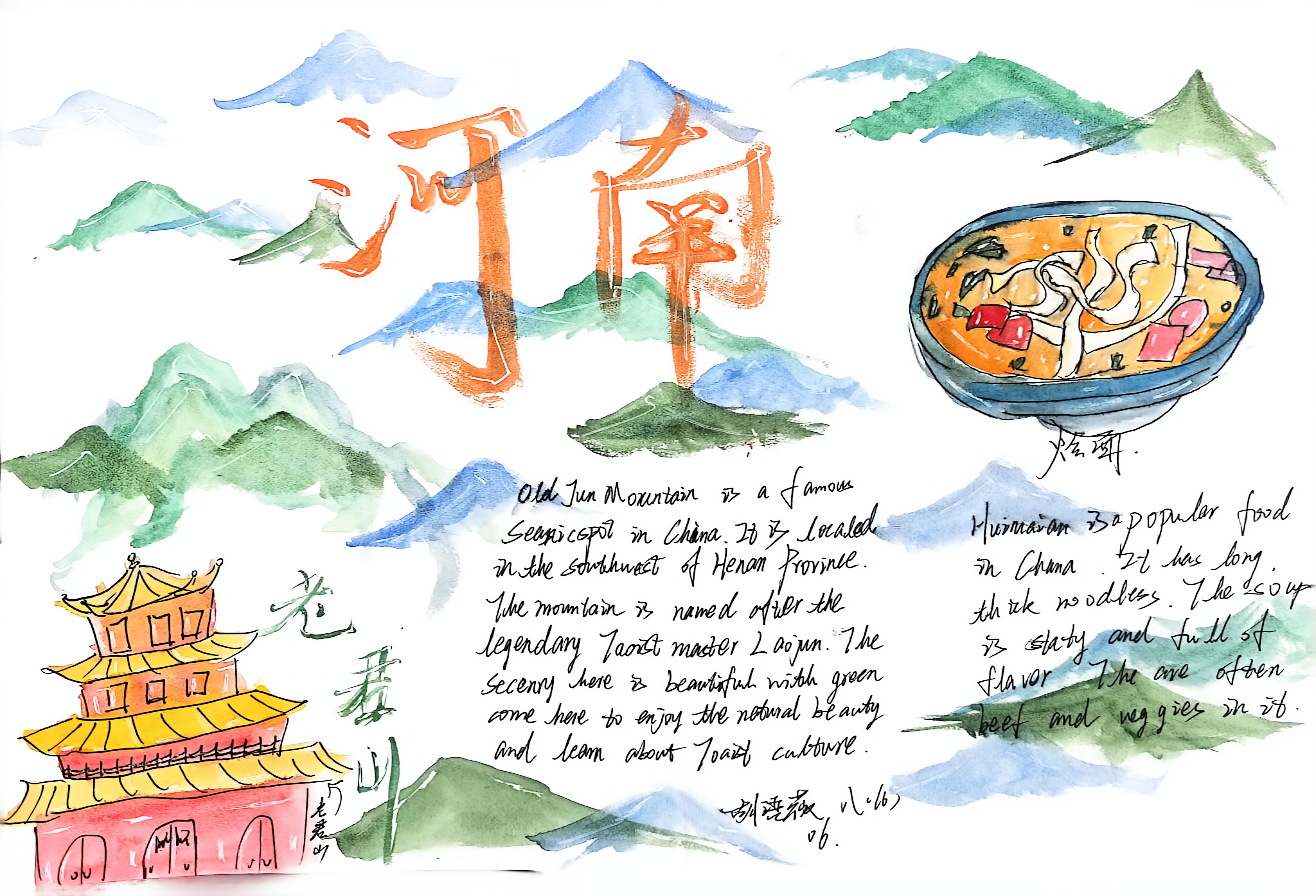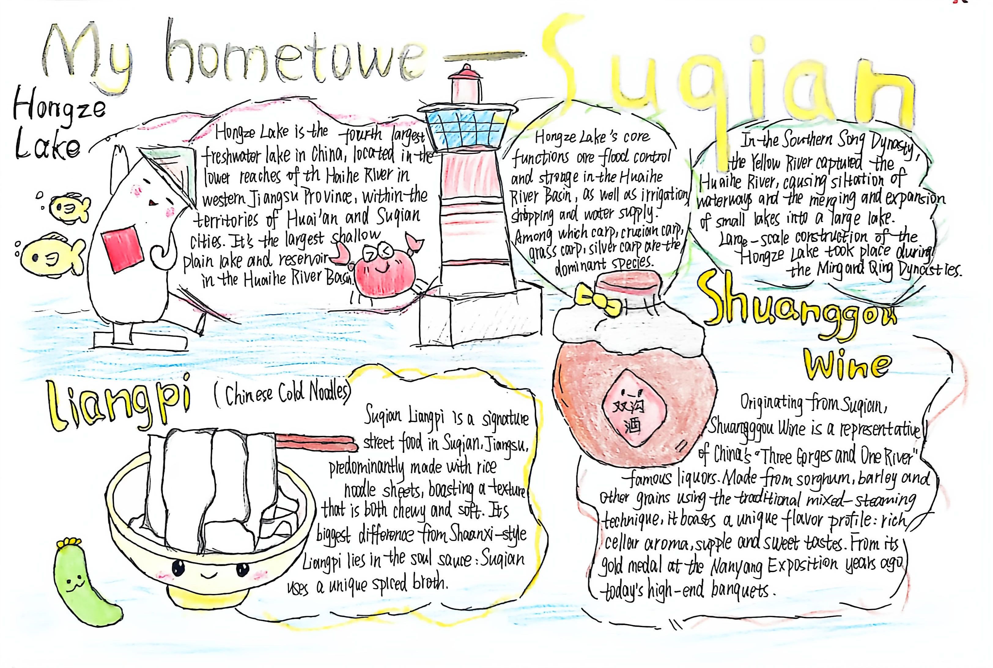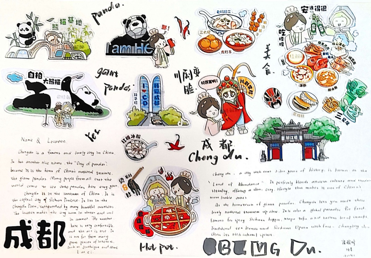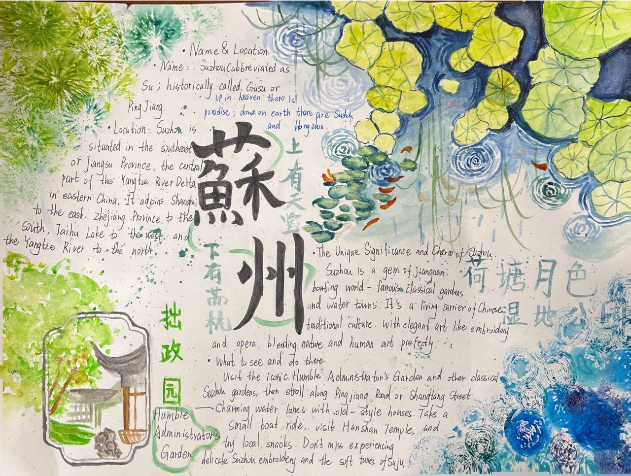碧波学子精选家乡特色景点,在纸上创作英文导览手抄报。手绘美景与英文介绍相映成趣,从地理方位到人文底蕴,从景观特色到游览指引,词句工整、图文并茂。一笔一画锤炼语言素养,一字一句浸润乡土之美,在创作中感受家乡魅力,在书写中提升英语表达。