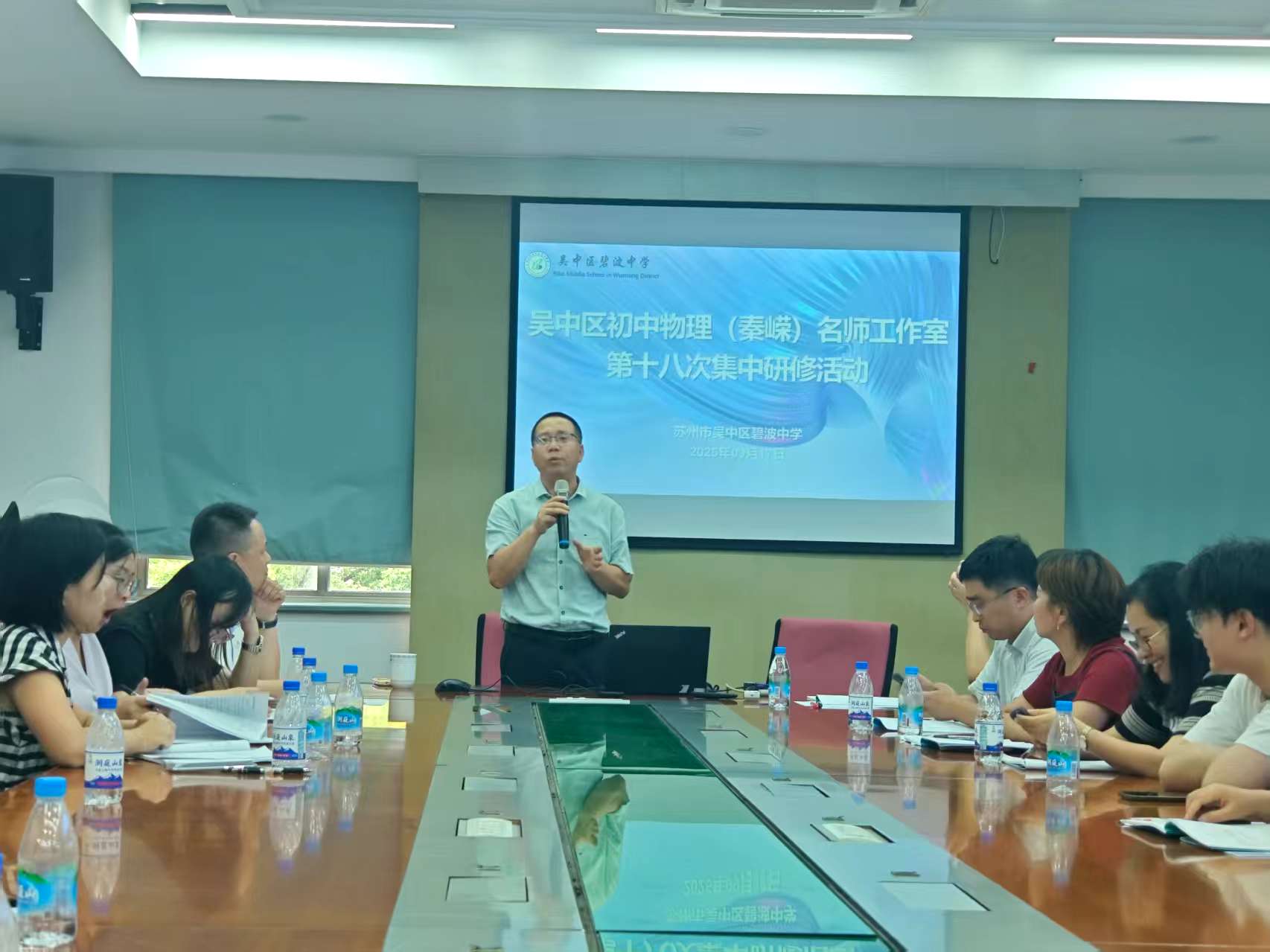 为深入理解苏科版新教材的编写理念与实施策略、切实提升工作室成员对新教材的解读能力和实践应用水平,9月17日,吴中区初中物理(秦嵘)名师工作室第十八次集中研修活动在碧波中学石湖路校区举办。本次活动由工作室领衔人、省特级教师、正高级教师秦嵘书记主持,特邀吴江区盛泽第二中学正高级教师顾晓芳副校长莅临指导,全体工作室成员齐聚一堂,迎来新学期首次集体研修活动。