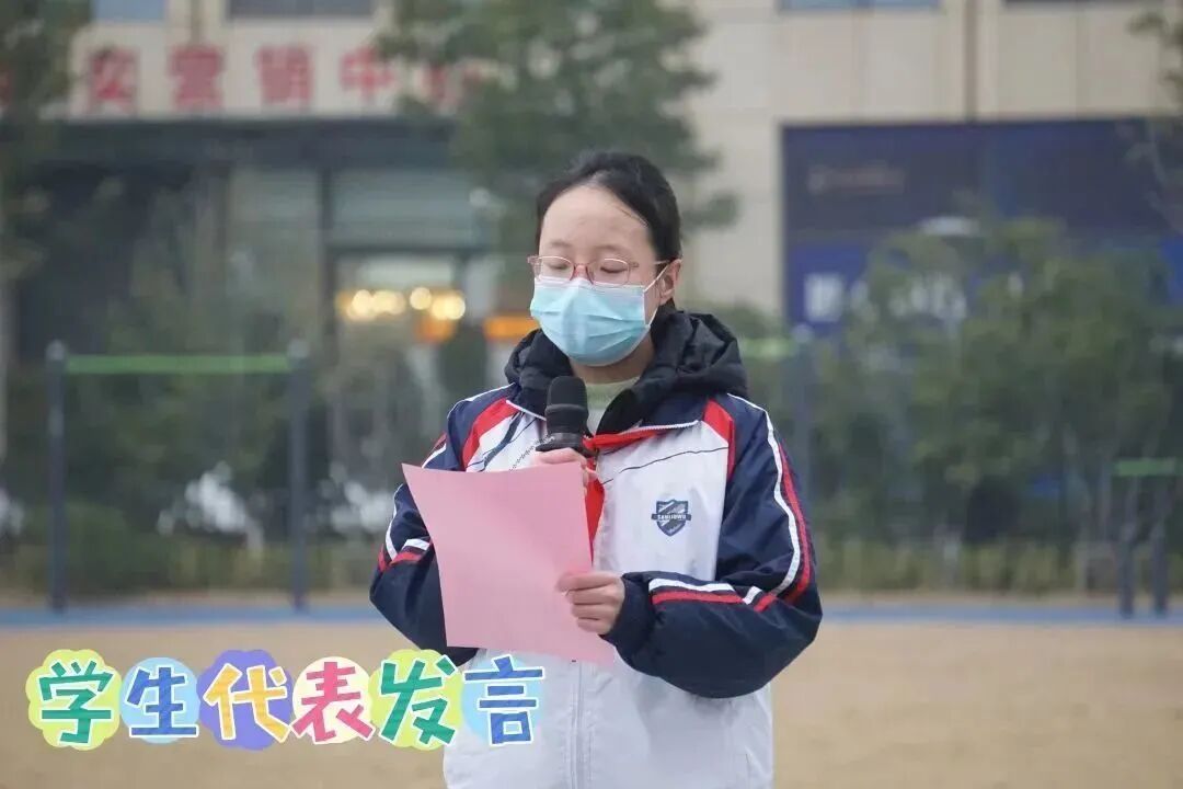 初一(7)班关怡晨同学作为学生代表发言。她以“励志成才,展望未来”为主题,鼓励同学们牢记碧波“风清气正”的校风。以自信为帆,以勤奋为舵,在新的一年中怀揣梦想,扬帆起航!
