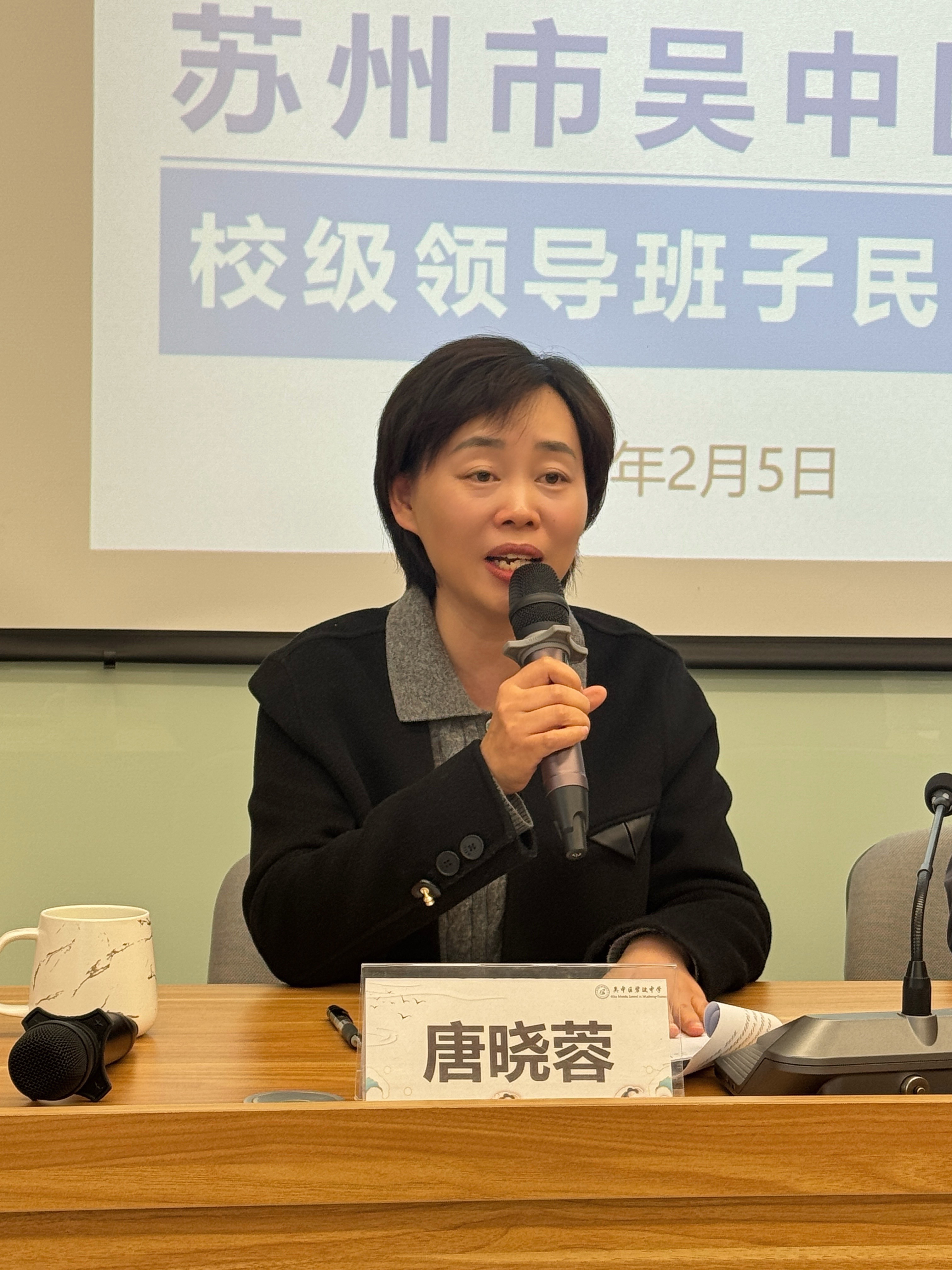 吴中区教育局刘继端科长亲临指导并讲话。刘科长对学校过去一年来在教育教学、师资建设、学生发展等方面取得的显著成绩给予充分肯定。面向新征程,刘科长强调,学校要进一步提高站位,做好推动吴中区教育高质量发展的排头兵,为区域教育事业做出更大的贡献,共同谱写“十五五”发展的崭新篇章。